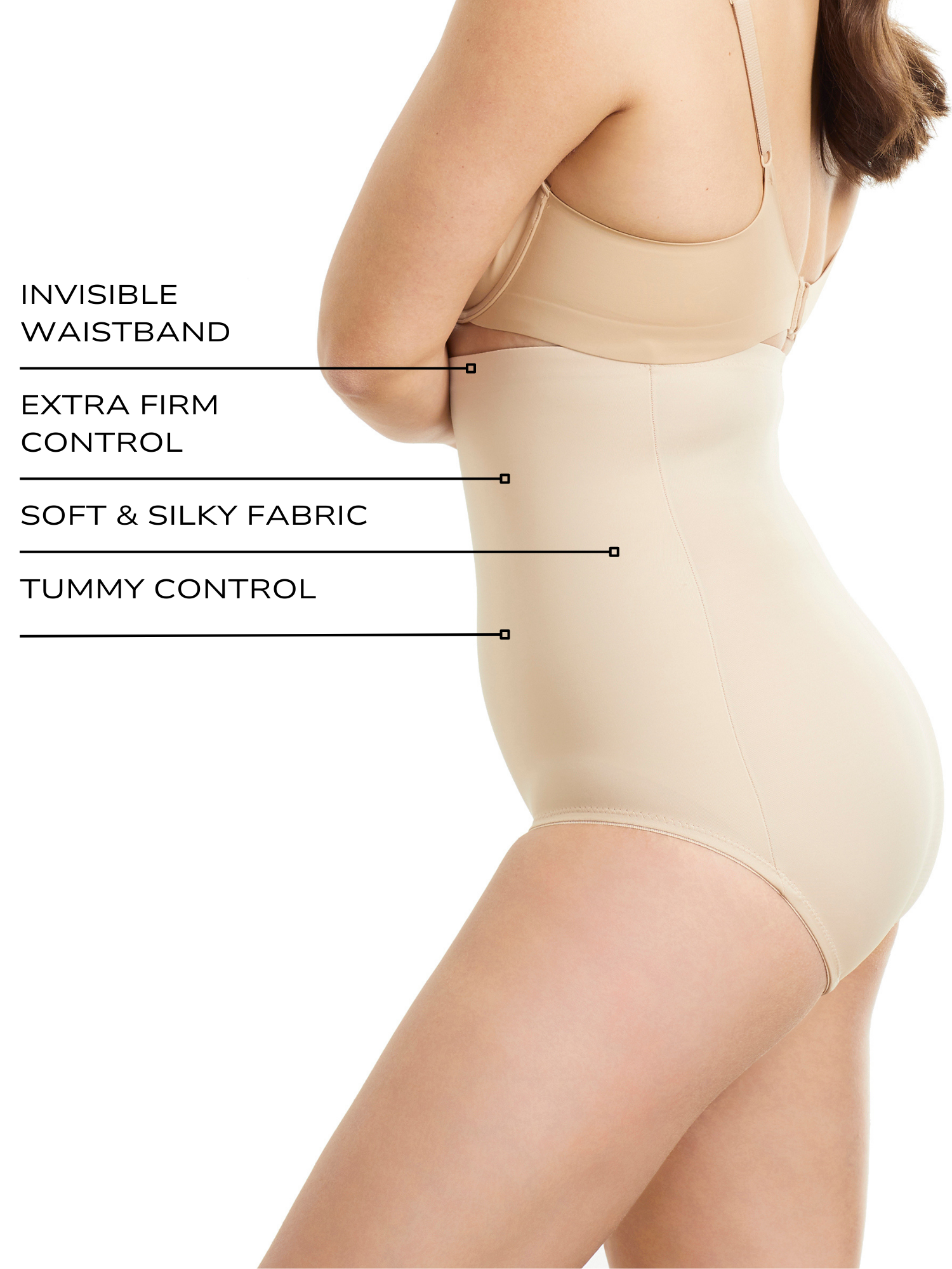 - High-waisted: This tummy control brief reaches high on the waist to offer total control.